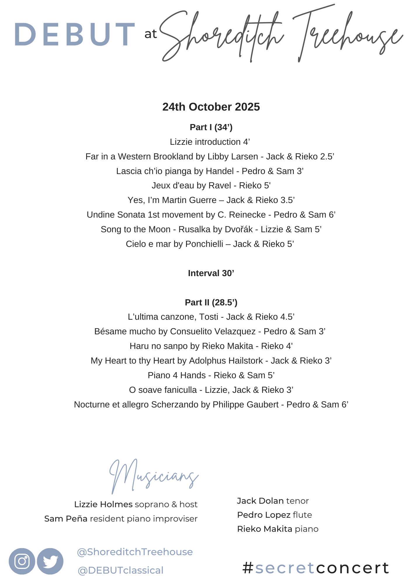 If tonight moved you, inspired you, or simply made you smile, we’d be so grateful if you’d share it. A quick post, story or review helps new audiences discover DEBUT — and helps us continue supporting emerging artists through these special concerts.